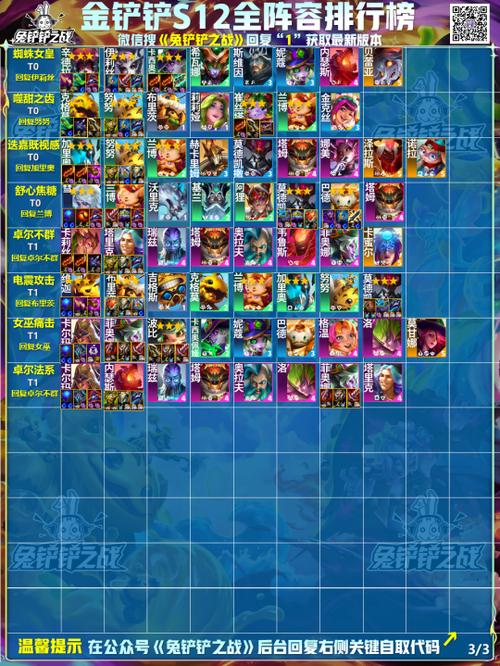 阵容的选取和搭配 金铲铲之战的阵容选取是获胜的关键第一步。新赛季中,以下几种阵容表现尤为出色 1 猎魔师 神射手 猎魔师与神射手的组合,以其出色的爆发力和远程攻击优势,成为当前版本一大热门。关键英雄包括 提莫:拥有极强的控制能力和伤害输出。