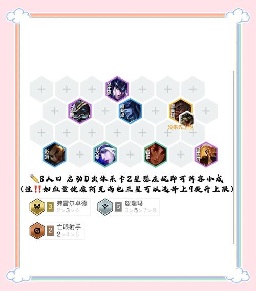 你可以尝试使用如刀妹、万豪、狼人、寒冰、冰女、厄加特、卡尔玛等7人口组合,这些英雄能够形成多个不同的羁绊,有助于你快速达到7个不同的羁绊要求。另一种策略是选取2巨神峰、2神谕、2法师、2司令、2堡垒、3约德尔、3诺克萨斯等羁绊组合,这样的组合同样能够快速凑齐所需的羁绊数量。