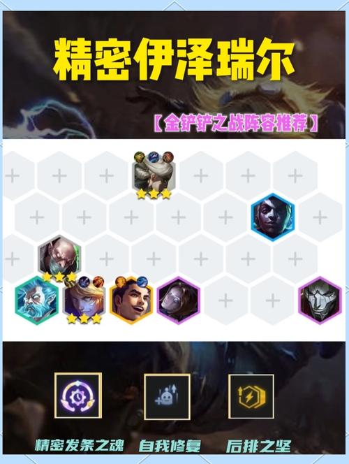 〖Two〗、金铲铲之战S5精密九五阵容的玩法攻略如下:阵容构成与核心思路 阵容构成:该阵容以4高精密发条、2狙王、3创造者、2极克等羁绊为主,核心英雄包括泽丽、暴走萝莉等高品质4费卡。 核心思路:通过高品质英雄和装备搭配,以及精密发条的攻速加成,快速提升英雄技能释放效率,从而在战斗中占据优势。