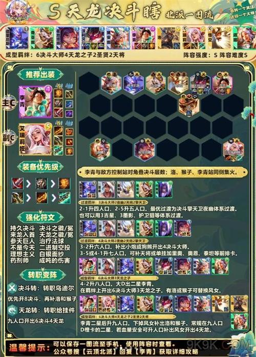 运营攻略方面,前期过渡阶段,应尽量获得大剑或拳套装备,以促进三国牌的胡乱。当有三国天选时,可以尝试使用6三国阵容获得连胜。在有福星天选的情况下,可以选取3福星走连败策略。卡特琳娜获得的装备应优先分配。在选秀中,若能获得铲子或野怪爆铲子,将极大提升阵容的战斗力。