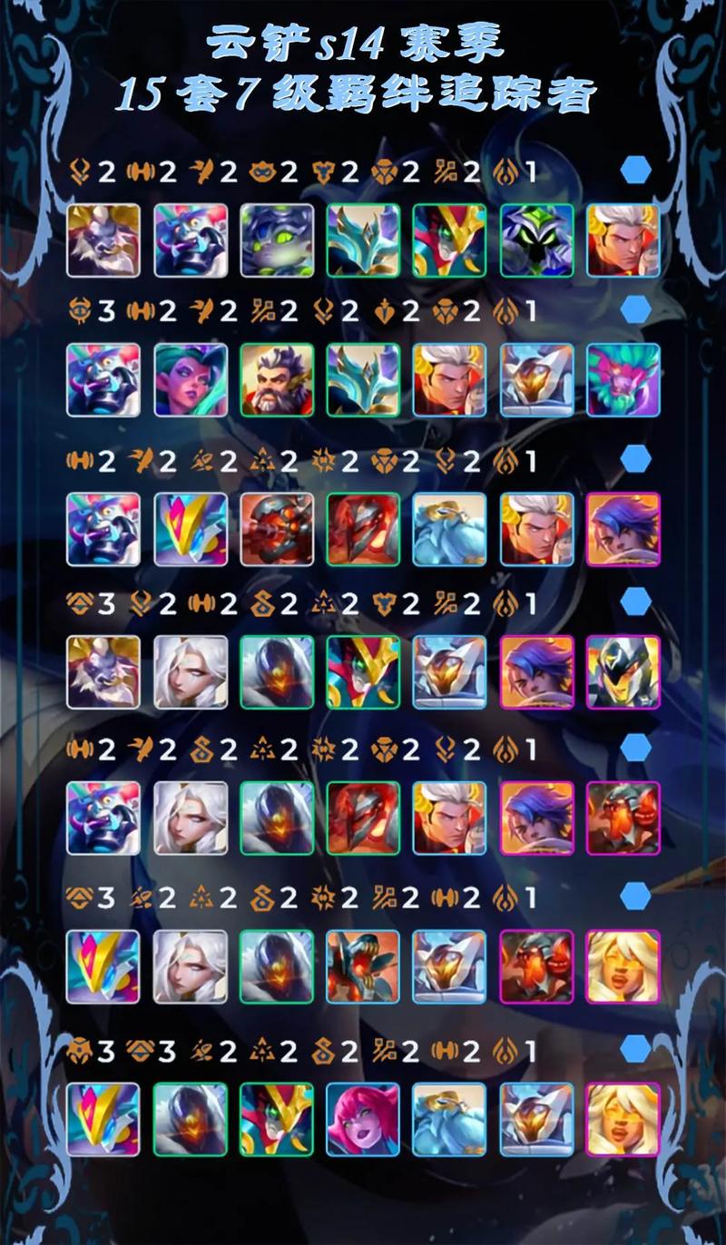 〖One〗、符文:符文可以提供额外的属性加成和技能效果。在选取时,应优先考虑能够增强羁绊追踪者和队伍整体实力的符文组合。综上所述,金铲铲新赛季羁绊追踪者的配置需要综合考虑核心羁绊选取、英雄选取与搭配以及装备与符文选取等多个方面。通过合理的配置和搭配,可以最大化利用羁绊追踪者的能力并提升队伍的整体实力。