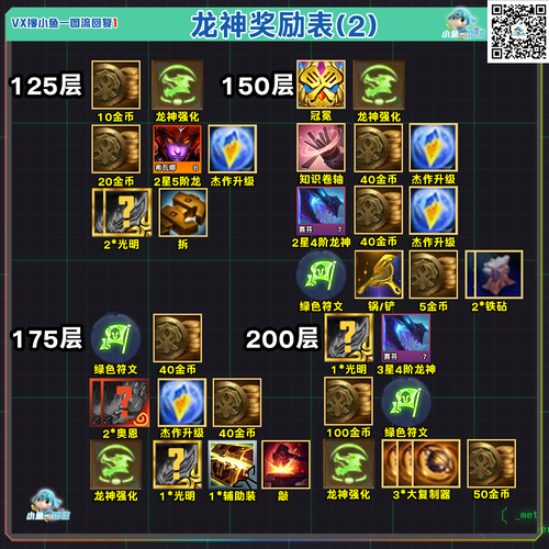 〖Four〗、核心是通过转职和龙神之路奖励凑齐10金鳞龙,触发全员秒杀效果并获得大量金币。装备与强化符文选取:装备:主C迭嘉需要御金师之杖(必备)、羊刀(必备)等;主坦艾达丝需要大亨之铠(必备)等。强化符文:首选金鳞龙之徽/冕(直接提升羁绊等级)、健康就是财富(经济运营)等。