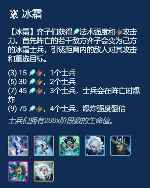 〖Three〗、在金铲铲之战中,北地羁绊被广泛推荐。首先,介绍阵容选取。推荐使用冰女、布隆、寒冰、狗熊、凤凰和猪妹组合。冰女和布隆作为坦克,可以提供足够的前排保护。寒冰则作为主要输出点,利用其技能和普攻进行输出。狗熊和凤凰则作为辅助,提供控制和治疗效果。猪妹则通过其控制技能和生命值来增强团队生存能力。