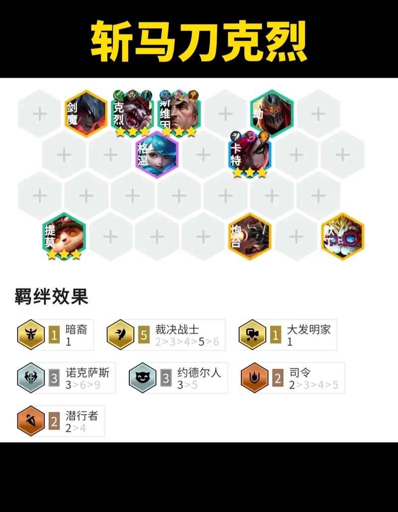 〖Five〗、云顶之弈s6金铲铲合成表羁绊阵容效果挑战者羁绊[挑战者]们获得攻击速度加成。在参与一次击杀后,[挑战者]们会冲刺向一个新的目标并使这个加成翻倍,持续5秒。