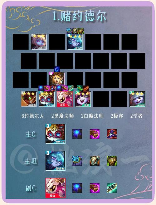 阵容组成与羁绊 阵容组成:扎克、薇古丝、斯维因、烈娜塔、维克托、狐狸、希尔科、玛尔扎哈、吉格斯。羁绊组成:6黑魔、3炼金、2学者。这样的羁绊组合能够最大化提升阵容的输出与控制能力。
