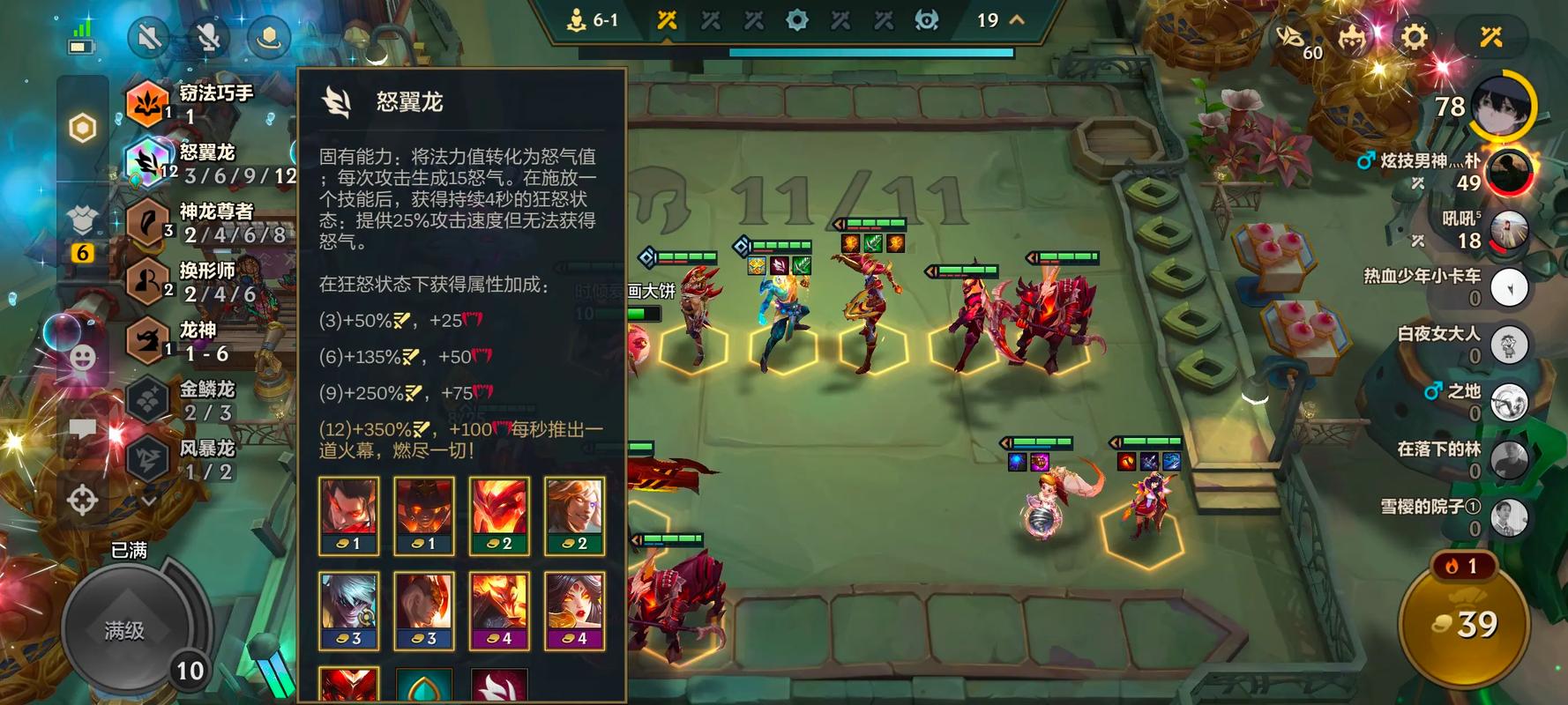 〖Four〗、怒翼龙,高额的攻速和全能吸血,且不需要转职就能开出9怒翼龙,但除了腕豪,乌鸦,霞,其他棋子和羁绊适配性非常低。像慎和人马这种纯靠技能的,没这个羁绊会更强玉龙,提供大量攻速和回复,有堪称史上最难凑的羁绊十二玉龙,但强度和成型难易度不成正比。