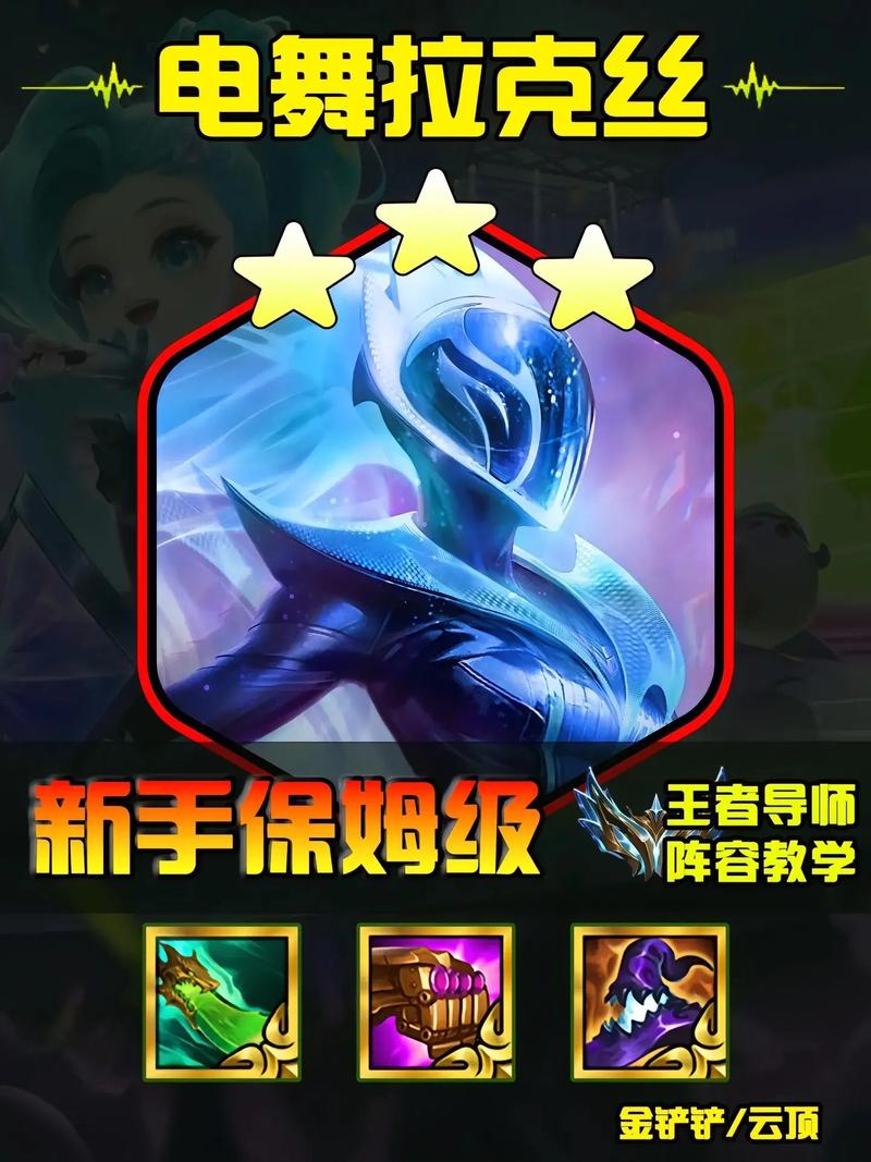 金铲铲之战S10电舞拉克丝玩法解析:阵容组成 核心阵容:拉克丝、扎克、贾克斯、劫、酒桶、卡牌、娜美、炸弹人。羁绊搭配:4电子舞曲、4耀光使、3迪斯科、2格斗。核心英雄装备 拉克丝(主C):青龙刀增加回蓝效率,法爆帽提升技能爆发伤害,确保一个技能瞬间清屏。
