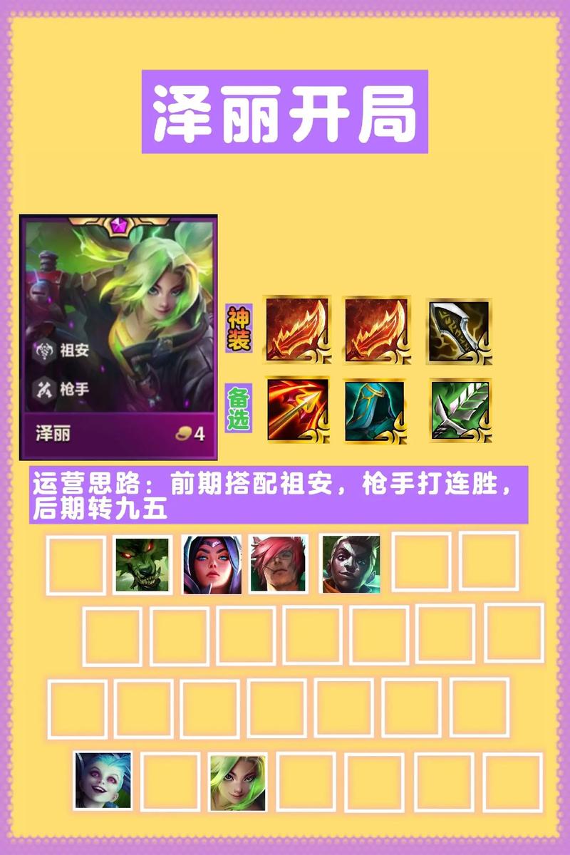 输出装优先青龙刀和法爆,给拉克丝或安妮打工使用。中期:6-7人口时,去掉潘森,补上蔚、瑟提和扎克,凑成4电子舞曲、4舞者、2格斗家、2耀光使的羁绊组合。肉装继续给纳尔打工,或转给两星扎克。后期:8人口阶段,寻找三星拉克丝,并补全劫、锤石、奇亚娜和吉格斯等英雄,娑娜可在9人口时再加入。
