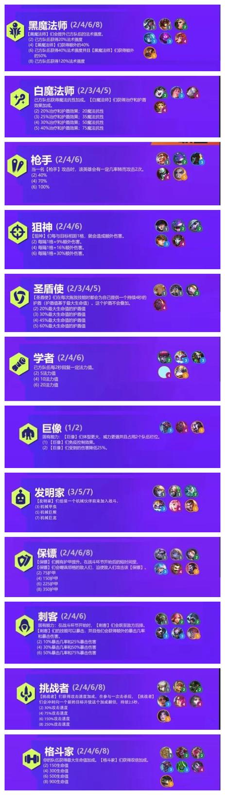〖One〗、金铲铲之战双城之战羁绊效果一览如下:战斗学院:效果:获得额外的攻击和法强。战斗学院的英雄使用技能后,队友也会获得额外的加成效果。黑魔法师:效果:友方获得法术强度加成,加成效果随等级变化。黑魔法师还会获得额外的法术加成。刺客:效果:刺客英雄使用技能具有暴击效果,并额外获得暴击及暴击伤害加成。