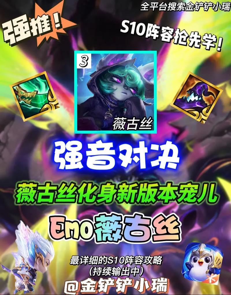 〖Five〗、金铲铲之战手游中的薇古丝阵容如何搭配,一直是玩家关注的焦点。下面将详细介绍双喜薇古丝阵容的搭配策略,帮助玩家构建强大的战斗队伍。双喜薇古丝阵容的关键在于搭配裁决、EMO和护卫羁绊,针对3费卡为主力输出的角色。