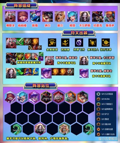 〖Four〗、福星阵容组成与羁绊解读,剑魔『4』、塔姆『1』、猪妹『4』、安妮『2』、派克『2』、萝莉『3』、烬『4』、卡特『3』。开局选取塔姆带福星装备,福星版本下,装备选取卡特琳娜优先续航装备,如科技枪或正义,科技枪能为队友提供恢复,正义则提升蓝量,以便提前释放技能。