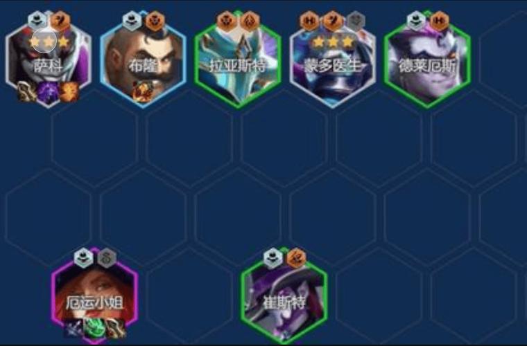 阵容组成 小丑、劫、赛娜、皇子、布隆、薇恩、诺手、蒙多阵容站位 劫站在左侧或右侧的第三个位置,小丑、赛娜和劫站在同一边以便集火目标。羁绊组成 6杀手:提供高额的额外伤害加成,增强小丑和劫的输出能力。3辛迪加:为小丑等辛迪加英雄提供额外的生命值和法术强度。2斗士:增加前排坦度,提升阵容的整体抗压能力。