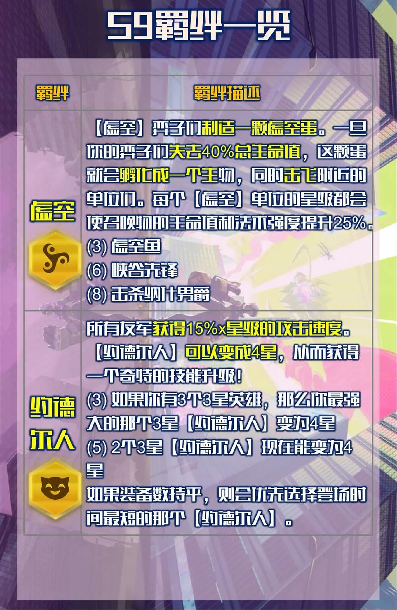 〖One〗、《金铲铲之战》中,羁绊是游戏的核心机制之一,分为种族羁绊和职业羁绊两大类。凑齐特定数量的同种族或职业弈子,可激活专属效果,为团队提供增益或特殊能力。种族羁绊效果详情:约德尔人:友军获得15%×星级的攻速加成,且可升至4星并获得技能升级。