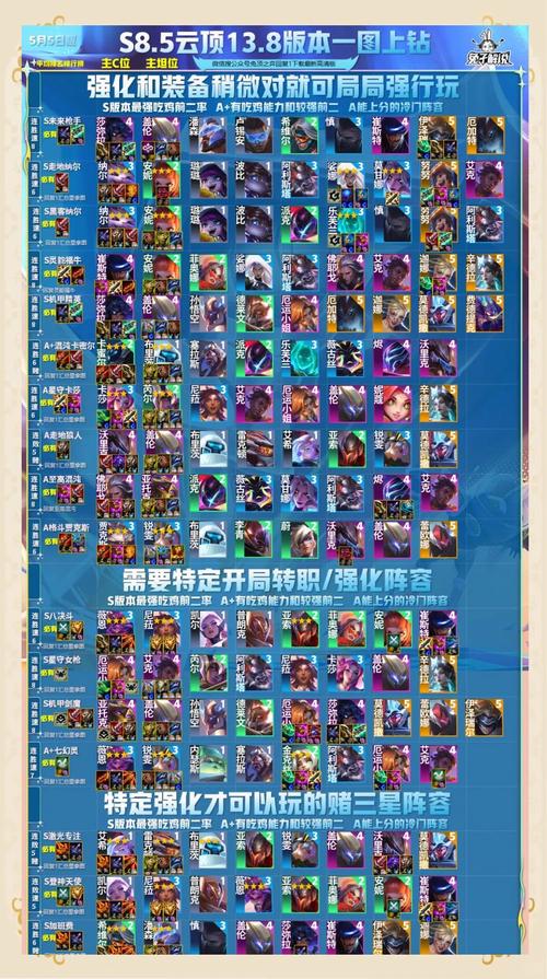 〖Three〗、阵容构成 英雄选取:虚空重炮、麦林炮手、天雷引、狻猊之心、虚空行者、仙灵女巫、邪恶小法师、圣毅之锤。羁绊搭配:6约德尔人、3法师、2虚空、2枪手、1忍者。这样的羁绊搭配能够大幅度提升阵容的整体输出和控制能力。