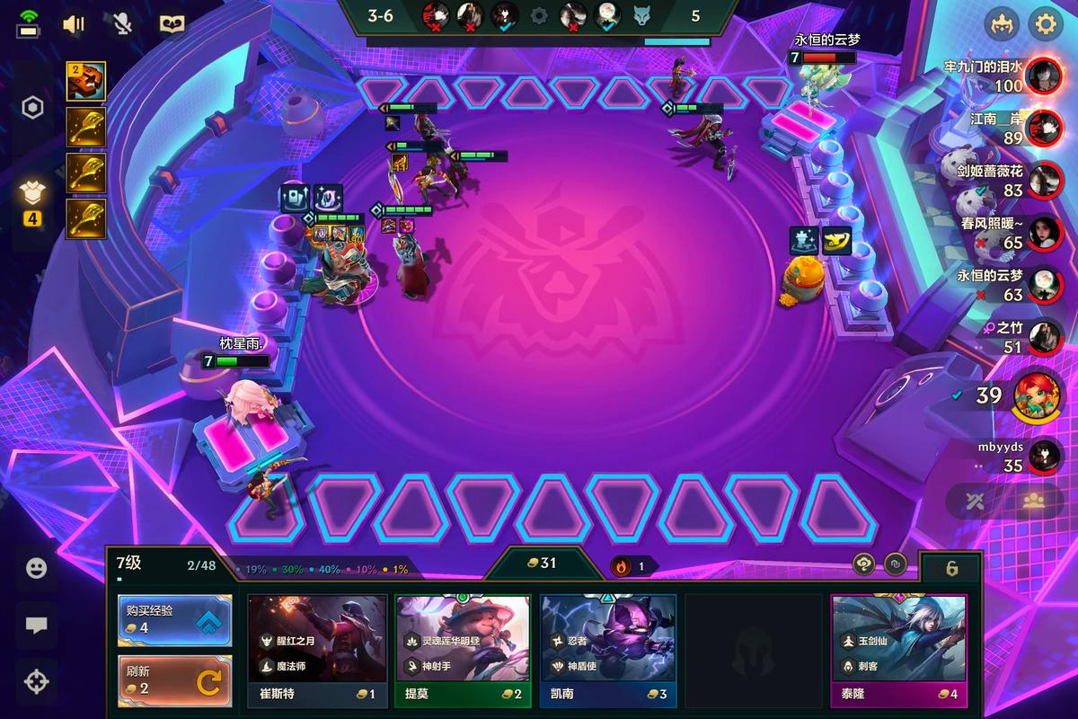 〖Four〗、后期运营:7人口补裁决卡开4裁决,老鼠这时候战斗力非常强了,我们补羁绊就可以继续上人口先。8人口时基本阵容成型,开始D卡找4费裁决的阿卡丽死歌。9级有裁决天选拉高上限可以上九补最后的裁决开6裁决。