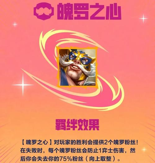 〖Two〗、金铲铲之战S8怪兽羁绊的核心效果为:怪兽弈子可突破常规羁绊数量限制,无数量上限地登场,但不会获得任何传统羁绊的额外加成,仅依靠自身强化属性参与战斗。具体机制如下: 羁绊特性怪兽羁绊本质是“无羁绊的强化体系”。