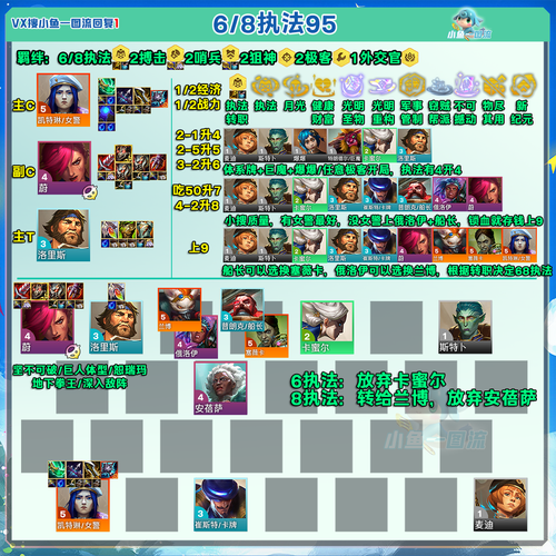 其他推荐阵容 体系一:蝎子、铁男、大虫子、大嘴、泽丽、薇古丝组成的阵容,具有不错的坦度和输出能力。体系二:大嘴、大虫子、泽丽、薇古丝、厄加特组成的阵容,输出能力更强,但需要注意前排坦度。体系三:盖伦、鳄鱼、可酷伯、扎克、酒桶、波比、厄加特、阿萝拉、莫甘娜组成的阵容,羁绊丰富,但操作难度较高。