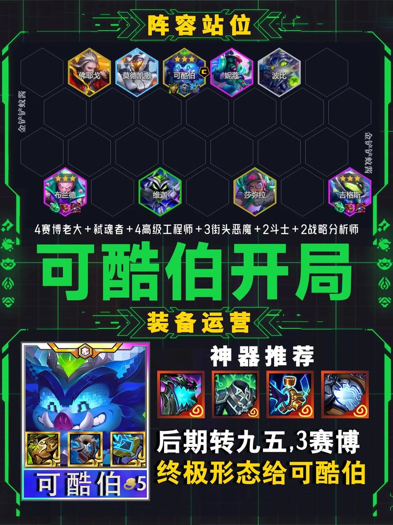 核心棋子选取 幻灵斗士:瑟提、蒙多医生等是阵容的核心角色,他们不仅拥有出色的生存能力,还能通过羁绊效果为团队提供额外的伤害加成。超级英雄:孙悟空、艾克等棋子能进一步提升阵容的爆发力和控制能力,是阵容中的重要输出点。