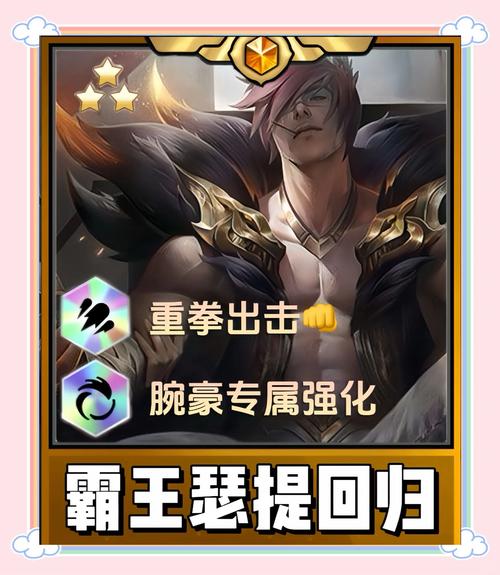 符文选取:开局必须要拿到“霸王”这个强化符文,以获得额外的瑟提卡牌和属性加成。后续符文可以选取利滚利、治疗或吸血类型,以增强阵容的整体实力。总结 在金铲铲之战s5版本中,瑟提凭借其强大的技能和阵容搭配能力,成为了上分的不二选取。只要掌握了正确的玩法和技巧,玩家就可以轻松利用瑟提上分。