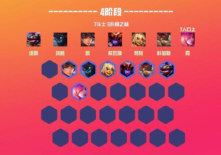 〖Four〗、霸王:瑟提作为天选英雄,具备独特的霸王羁绊,提供额外的战斗能力。1枭雄:虽然不是主要羁绊,但如有条件可搭配,增强整体实力。8斗士:斗士羁绊提供高额的生命值和攻击力加成,是阵容的主要输出和坦度来源。3永恒之森:增加阵容的魔法抗性和回复能力,提升整体生存能力。