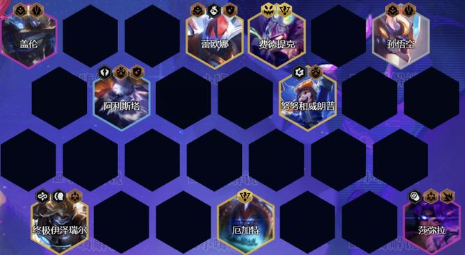 阵容构成与羁绊核心成员为孙悟空、阿利斯塔、莎弥拉、费德提克、蕾欧娜、厄加特、盖伦、终极伊泽瑞尔、努努。羁绊组合为3战斗机甲(提供前排坦度与攻击力叠加),辅以2护卫、2枪手、2秘术、2吉祥物、2怪兽、1堕落使者。若无法升至9人口,可用2星盖伦替代蕾欧娜。