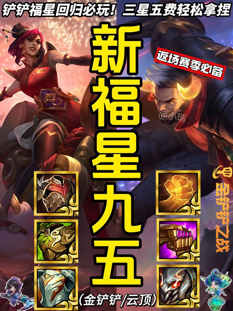 金铲铲之战福星九五至尊阵容玩法解析如下:阵容核心思路 前期策略:福星九五至尊套路的核心在于前期利用三福星羁绊打连败,以此快速获取大量的金币和装备。这需要玩家精确控制自己的战斗力,确保在不断连败的情况下扣最少的血。中期过渡:在获得足够的金币后,玩家需要快速提升人口,找到后期的核心阵容。