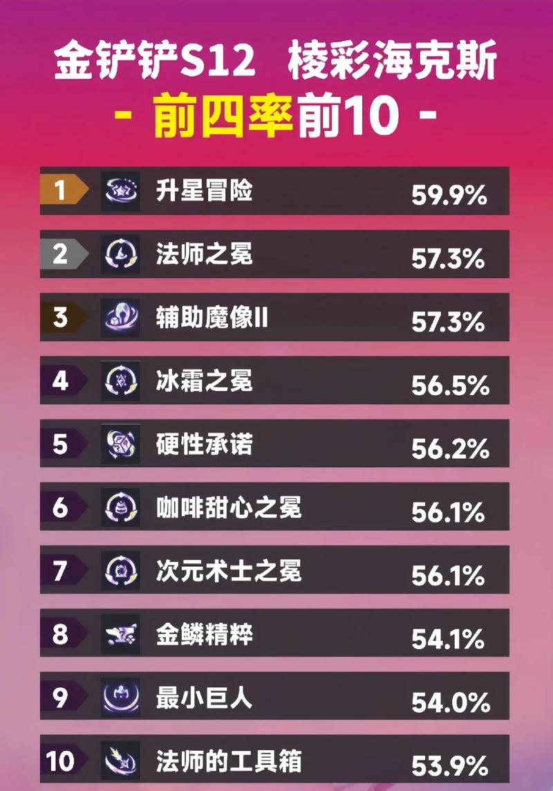《金铲铲之战》S12海克斯强度排名如下:辅助魔像I 、II 强度分析:辅助魔像从不会动的假人变为会动的单位,大大增强了其通用性和实用性。它不仅能为队伍提供稳定的前排,还能方便地站位吃辅助装,且对后排吃辅助装的阵容更加友好。