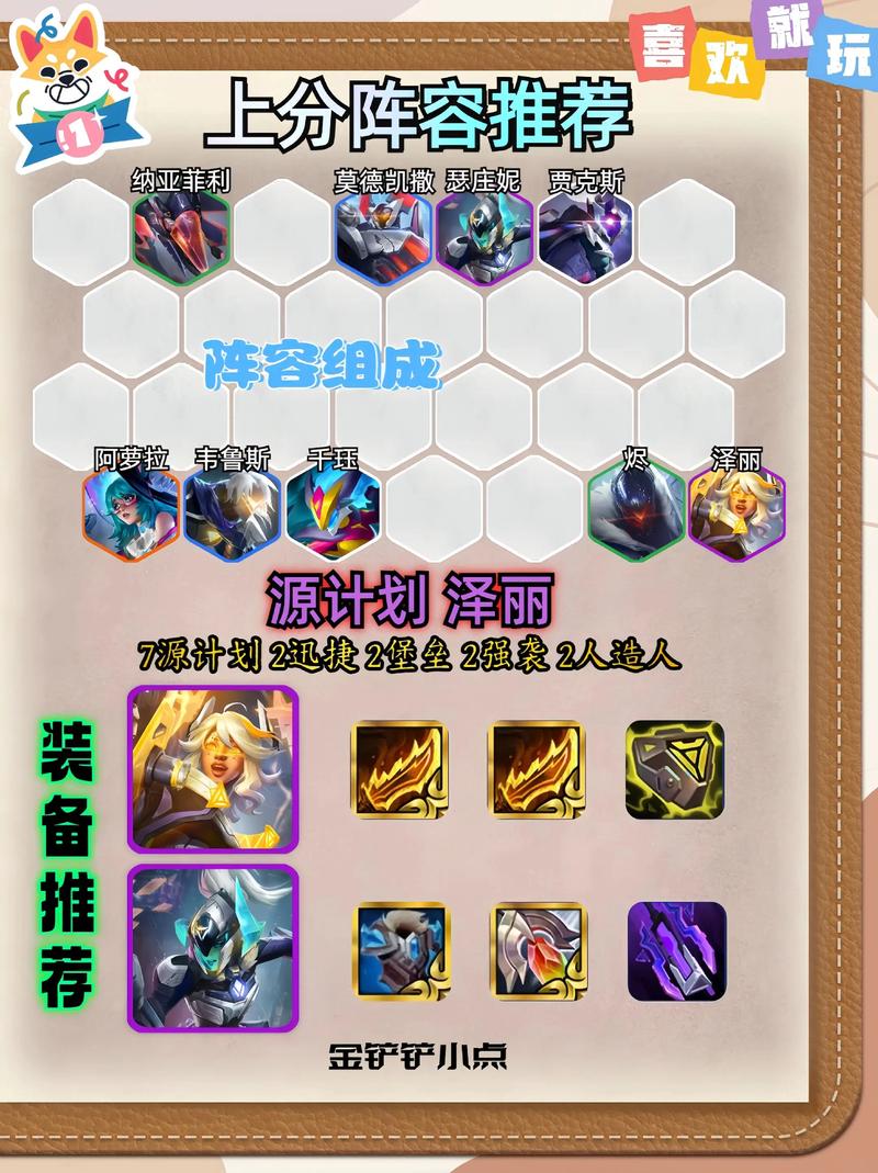 〖One〗、装备分配: 塔莉娅:蓝霸服、珠光护手、巨人捕手,确保快速启动与额外输出。 安妮:日炎斗篷、石像鬼石板甲、离子火花等,提供坦克能力。 费德提克:珠光护手、巨人捕手,提升输出效率。 运营策略: 初期:以3小天才打工过渡,璐璐2星状态在2爱心加成下提升战斗力,佐伊替换需谨慎。