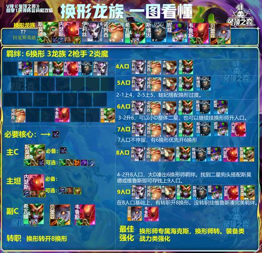 〖Four〗、龙族阵容在金铲铲之战S5赛季中是由敖兴、泰拉、龙女、龙王和斯维因组成的。这种组合能够提供强大的输出和控制能力,尤其是在后期。强化符文方面,优先考虑使用龙神之魂和诅咒冠冕来强化龙族的效果。另外,后期专家符文也非常关键,能够提升阵容的战斗力。