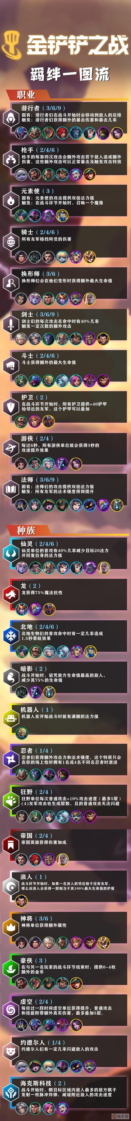 金铲铲之战s1的羁绊主要有23种属性,通过上场同类羁绊的英雄激活:北地:攻击有一定概率造成眩晕。骑士:格挡20/40/80点来自普攻的伤害。游侠:每过3秒有25%/65%概率触发攻速翻倍,持续3秒。暗影:开始战斗时随机诅咒一名敌人,设定生命值为100。忍者:队伍中忍者伤害提升40%/60%。