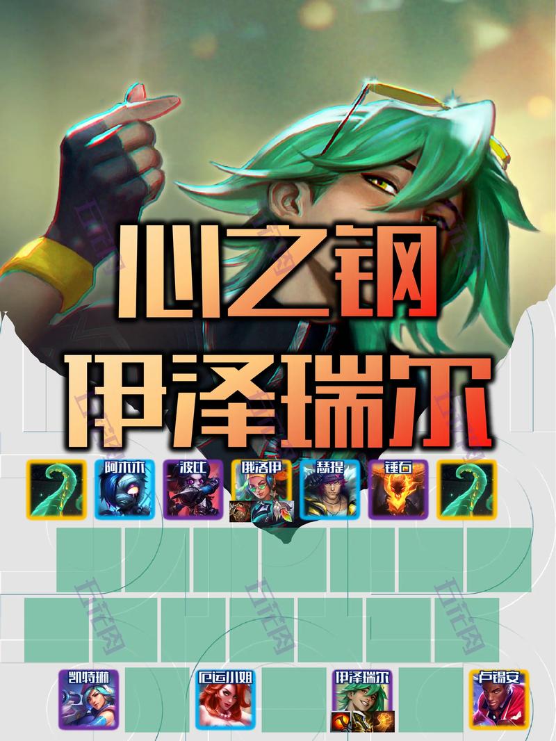 〖One〗、金铲铲之战S10心之钢EZ0阵容搭配方法如下:阵容组成- 核心棋子:EZ(伊泽瑞尔)、腕豪、掘墓、俄洛伊、锤石、厄斐琉斯、烬、阿木木、卢锡安。羁绊组成- 主要羁绊:3心之钢、2舞者、2大腕射手、4护卫、2格斗家、2疾射枪手。