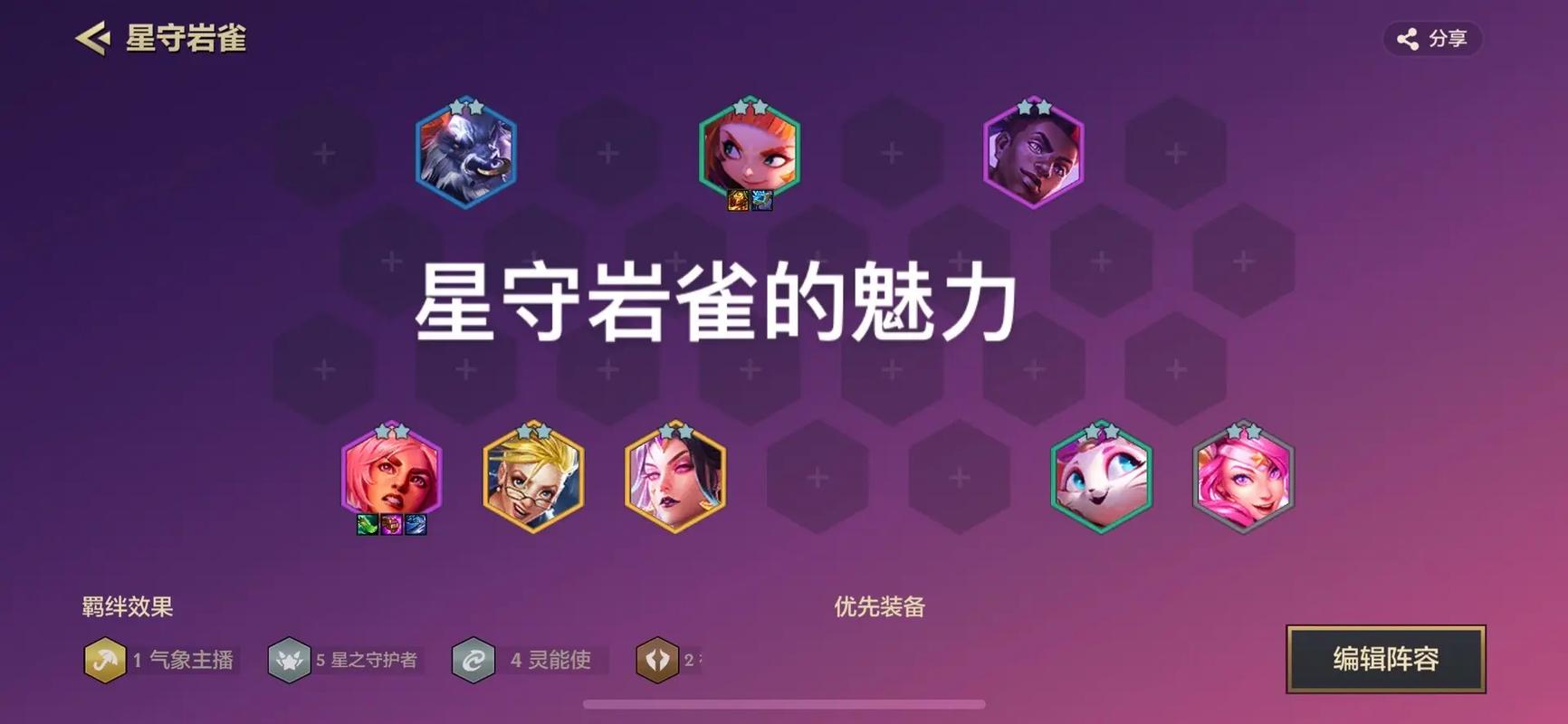 星之守护者 棋子:拉克丝、优米、芮尔、卡莎、尼菈、艾克、塔莉娅、辛德拉 羁绊效果:星之守护者们获得法力值时额外获得一部分法力值回复 黑客 棋子:乐芙兰、佐伊、劫 羁绊效果:黑客们召唤一个会将一个弈子带到敌方后排的[黑客里姆]并获得X秒不可选取。