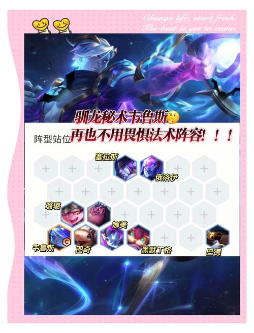 〖Four〗、金铲铲之战秘术宗师玉剑玩法攻略来啦! 阵容组成 首先,咱们了解到道这个阵容是由哪些英雄组成的。看图说话,就是下面这些英雄啦,记得把他们凑齐哦! 阵容站位 站位很重要哦!泰隆要跳到对面的C位去,让他尝尝厉害。