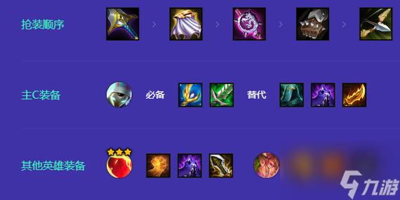 〖Three〗、虚空之女,以其独特能力,搭配麦林炮手的远程输出,可装备以增强其生存与输出的装备,如反甲、龙牙等,以应对物理伤害。轩辕作为未来守护者,应优先考虑科技枪、正义之手等装备,增强其续航与控制能力。疾风剑豪臻冰之箭,在出装上应侧重于提升其攻击力与攻速,如无尽之刃、轻语等装备为其首选。
