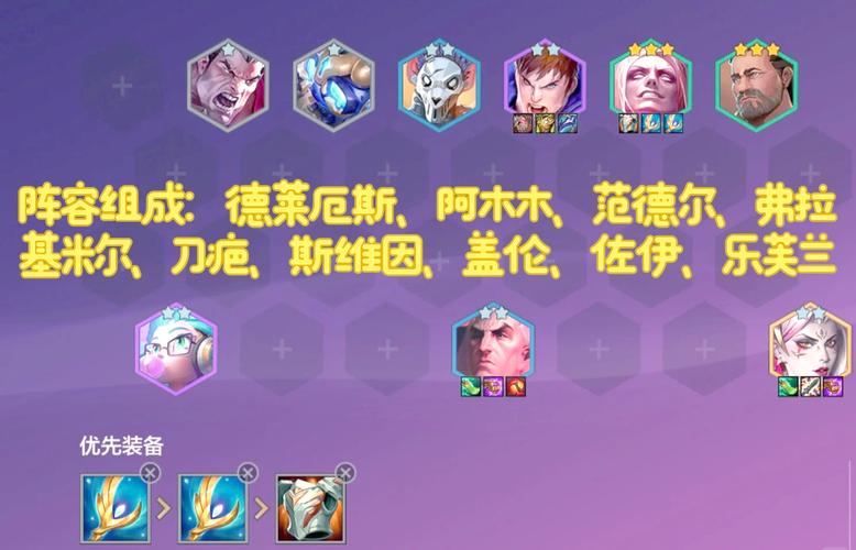 费:卡西奥佩娅、米利欧 2费:加里奥、索拉卡 3费:卡尔玛 4费:慎 5费:瑞兹 这些弈子的选取将直接影响到队伍的战术和续航能力。