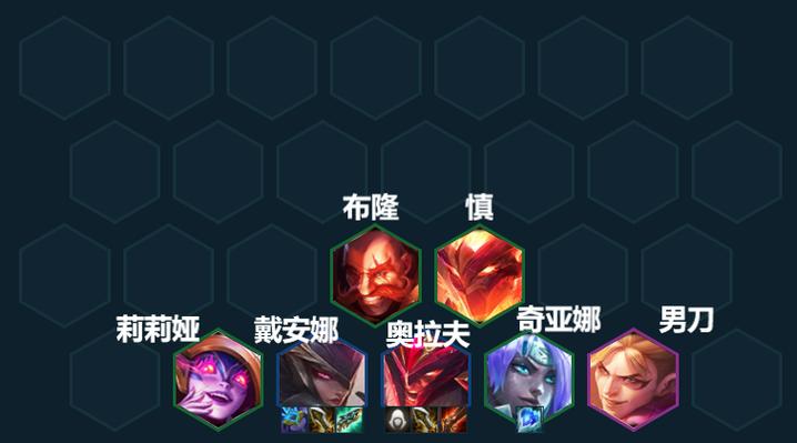 【战狂刃奥拉夫】阵容组成:黛安娜、永恩、奥拉夫、慎、亚索、赫卡里姆、莉莉娅、布隆,阵容羁绊:4屠龙勇士4狂刃战士2幻镜龙2格斗家2重骑兵。