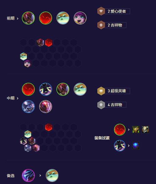 龙牙:负极斗篷+负极斗篷 备选装备:救赎,坚定之心等肉装。运营思路 前期运营 天选找伊泽瑞尔或者女枪的大腕枪手天选。2-1拉4,前期抓超级粉丝阵容卡搭配朋克过度,这套非常舒服,后续抓到合适的天选后开三超级粉丝白嫖一件装备。2-4选秀,装备还是推荐先做肉装先。