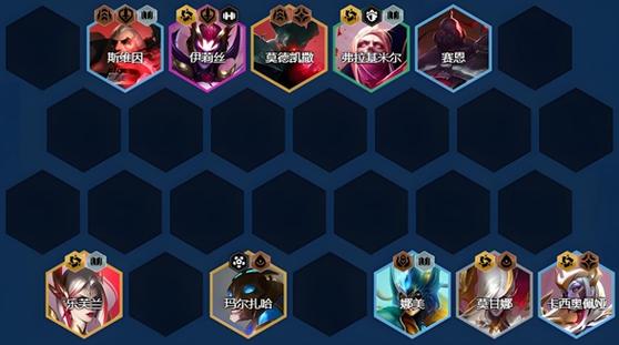 〖Four〗、阵容站位 瑟庄妮位于前排单抗,其他棋子围绕迦娜缩角站位。搜牌节奏 于4-1级升7级,根据自身血量与阵容质量选取搜牌或攒钱升级。4-4-5或5-1级升8级,找到迦娜以开3平民。确保瑟庄妮与莎弥拉达到2星,如莎弥拉未达到2星,可替换为厄斐琉斯。避免过度贪恋魔盗团,上高坦棋子即可。