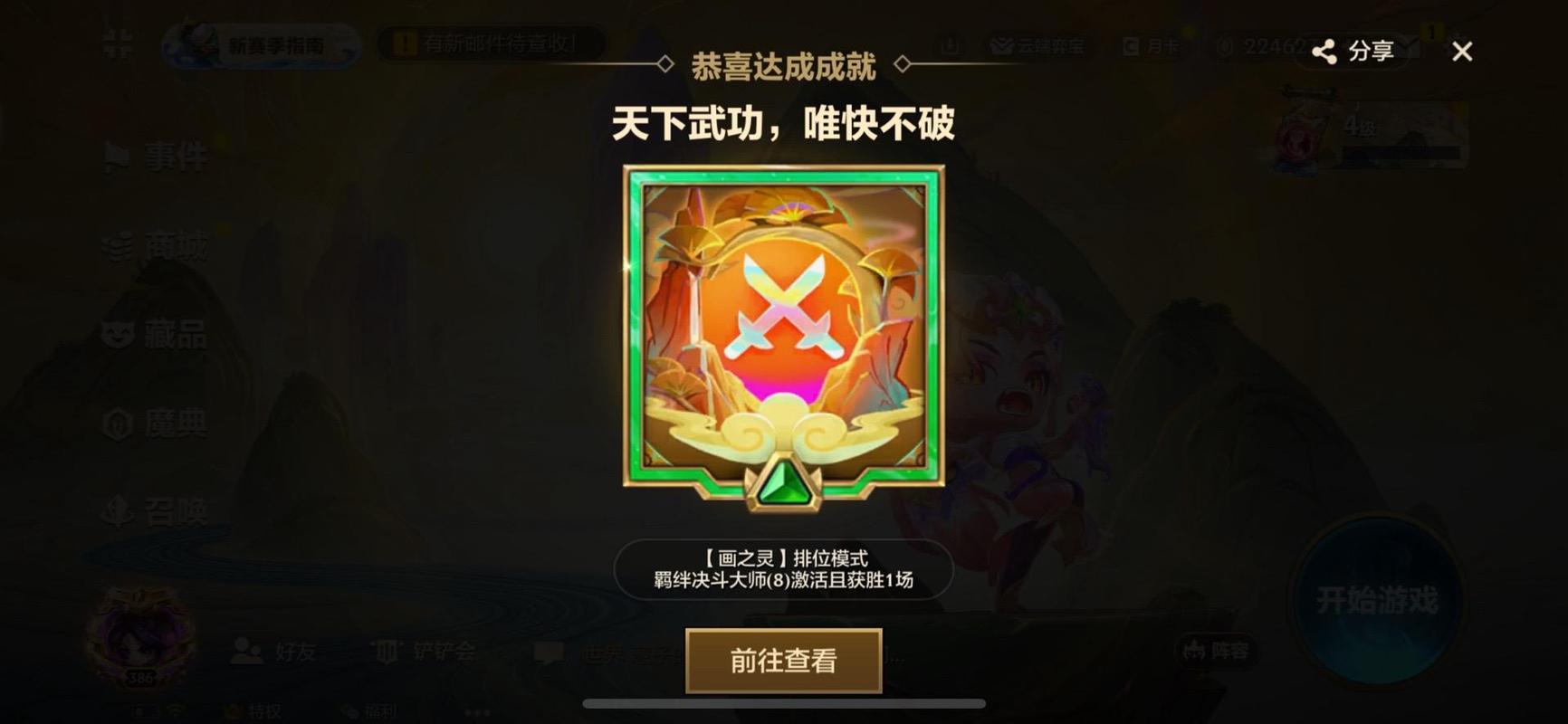 金铲铲之战s5版本推出成就系统,玩家完成特定条件可获得成就并领取奖励。成就系统包含多种奖励,下文将详细介绍达成条件。成就系统奖励详情如下: 金闪闪的快乐:单人排位上阵3星橙卡并夺冠(紫色成就)。 多多益善:匹配/排位模式满员夺冠(紫色成就)。