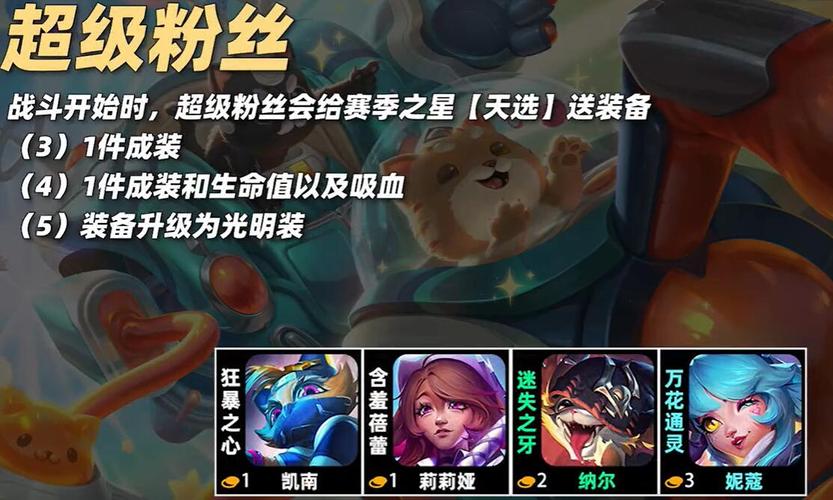 最新一期金铲铲之战的羁绊效果揭秘,S10赛季为我们带来了众多有趣的设定。首先,KDA超级粉丝羁绊确认为妮蔻、莉莉娅和阿卡丽,它们的互动将带来独特的增益,包括真实伤害击杀后的变身和装备转移,以及在特定情境下的团队强化,如五杀乐队的战斗提升和一盟呐喊带来的友军增益或敌方恐惧效果。