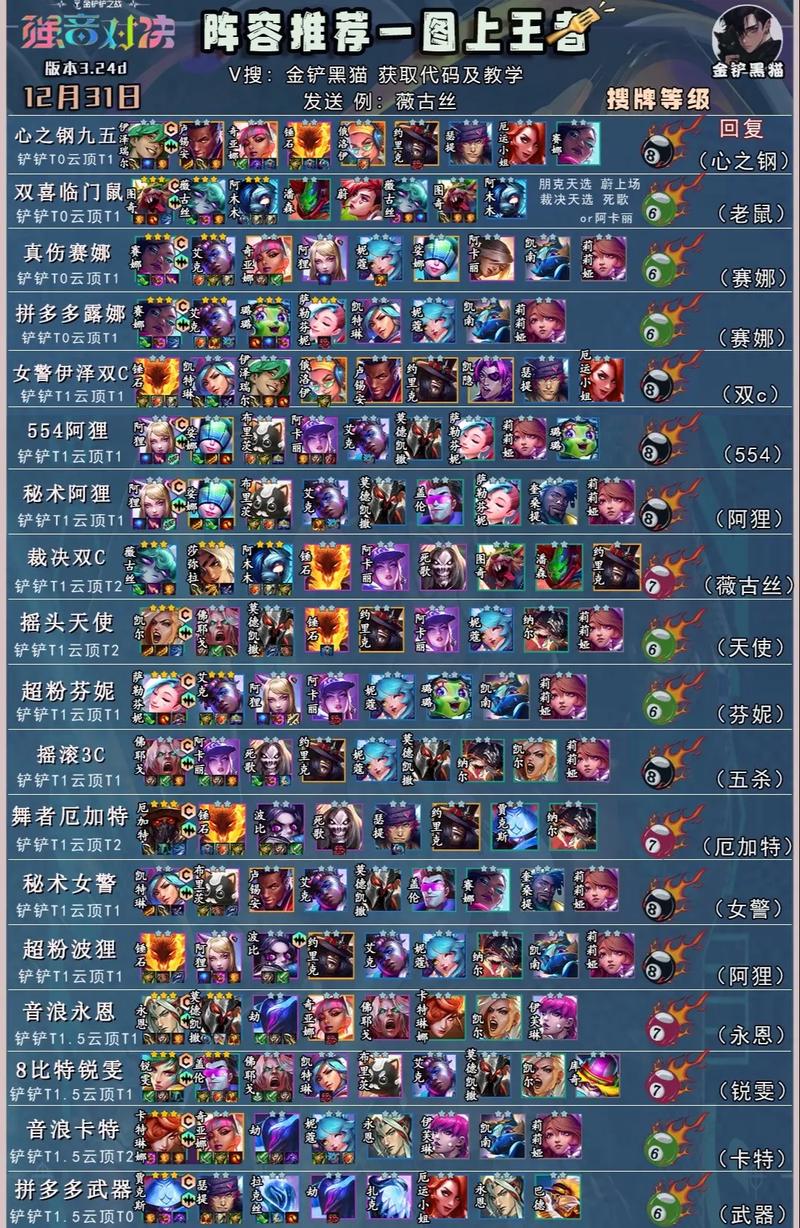 〖Six〗、金铲铲之战S10鼠王薇古丝阵容,听起来就很酷对吧?这个阵容以老鼠和薇古丝为核心,搭配其他几个强力英雄,能打出爆炸性输出。下面是具体的玩法和阵容搭配推荐:阵容组成:老鼠薇古丝阿木木潘森阿卡丽莎弥拉卡尔萨斯这个阵容羁绊为6裁决使、2EMO、2朋克,确保了强力的输出和控制能力。