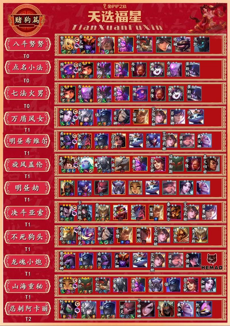 福星天选阵容:核心英雄如“天雷劫”或“疾风剑豪”亚索,搭配具有高爆发能力。辅助英雄如“凛冬之怒”瑟提和“暴走萝莉”金克丝,提供控制或治疗能力。激活福星羁绊以获得额外金币收益,快速升级和购买装备。后排刺客前排宗师阵容:后排五个刺客,前排三个宗师。泰隆必备正义之手,其他装备可以灵活搭配。