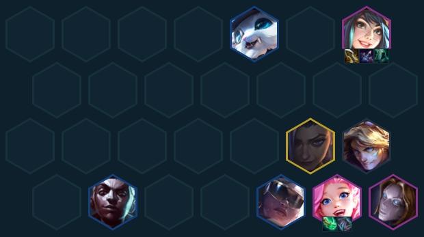 〖One〗、阵容组成:纳尔『3』刀妹『4』金克丝『5』EZ『1』艾克『3』赛娜『3』萨勒芬妮『4』发条『4』。阵容羁绊:1宿敌 4极客 3社交名流 3发明家 2白魔 2强袭。海克斯强化:优选:极客转、废品厂、大天使之拥、名流之魂。备选:短兵之利、潘朵拉的装备、组件百宝袋、狩猎律动。