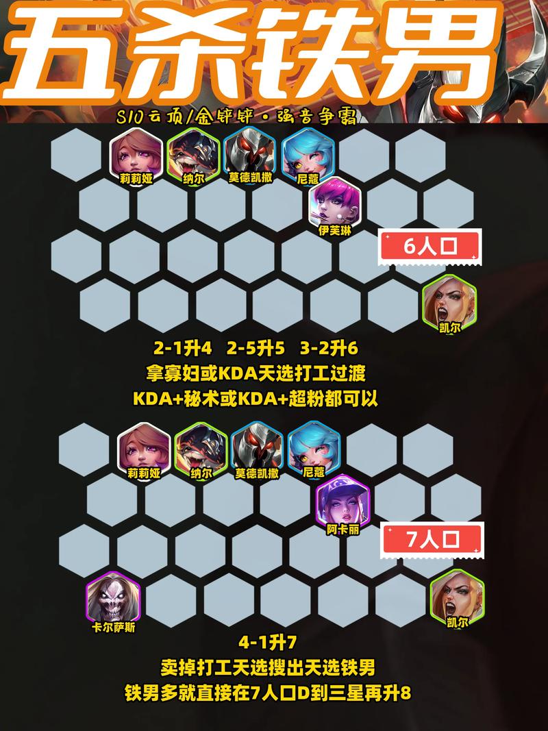 传送门篇 多才多艺阵容 【萨勒芬妮+KDA】组合:7人羁绊,包含5法师、2秘术,优先考虑9人口补琴女,三星萨勒芬妮为关键,后期根据情况调整装备。【五杀刀锋天使】阵容:7人羁绊,3刀锋、3超粉,适合连败拉人口,天使三星后考虑上9人口补全羁绊。