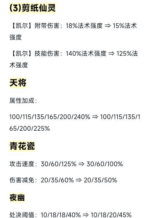〖One〗、- T1级羁绊如法师,具有强大的双重施法能力,但需要找到能承担主要输出角色的英雄。- 其他羁绊如咒人、裁决和三国等,强度一般,不建议作为主要玩法。 棋子 - 4费和8费棋子的强度普遍不高,5费棋子中,奶妈、巴德和佐伊偏向辅助角色。- 10费棋子中,除了尿尿龙,其他主c能力相对较弱。