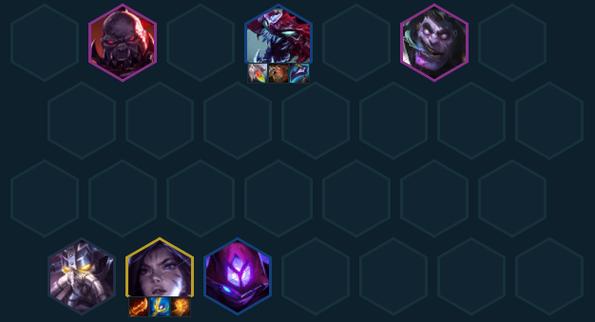 阵容组成:雷克塞,蔚,卡萨丁,卡莎,玛尔扎哈,卡兹克,扎克,塔姆,希尔科。羁绊搭配:5变异:【变异战士】们每场对局都会获得一个不同的羁绊加成。共有“突触网络”、“超级肾上腺”、“破蛹之变”、“旺盛胃口”、“生命汲取”、“源计划增幅”、“虚空降生”7种可能的效果。