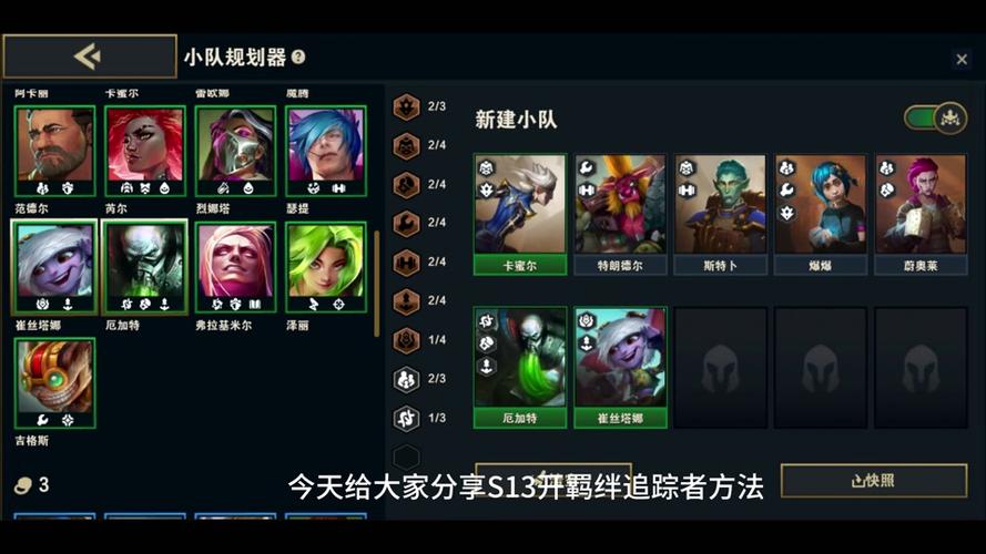 首先,需要明确的是,凑齐七个羁绊追踪者的关键在于选取合适的棋子以及它们之间的羁绊关系。在《云顶之弈》中,不同的棋子之间拥有不同的羁绊,通过合理搭配,可以在战斗中发挥强大的实力。