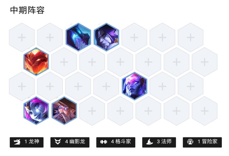 在3-7阶段,升至7人口,开始搜寻六玉龙三半神的完整阵容(无需璐璐)。出售卡尔玛,将其装备转给凤凰。确保凤凰和狗熊达到2星等级。4-7阶段,升至8人口,搜寻全体棋子达到2星,并优先追求凤凰和狗熊的3星。若条件允许,可考虑升至9人口,上阵巴德。