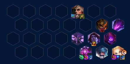 大腕射手:库奇『1』,卡莎『2』,厄运小姐『3』,伊泽瑞尔『4』,烬『5』[大腕射手]们获得攻击力。这个加成会在[大腕射手]们每次施放技能时获得持续3秒的提升。