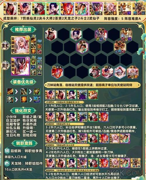 〖Two〗、S11赛季九五阵容推荐 阵容介绍 羁绊组成:2圣贤 2天将 2天龙之子 2擎天卫 2永恒之森 2神谕者 羁绊介绍 圣贤婕拉『2』+皎月『3』+莫甘娜『4』+孙悟空『5』战斗开始时:前2排的友军获得全能吸血。后两排的友军获得法强。